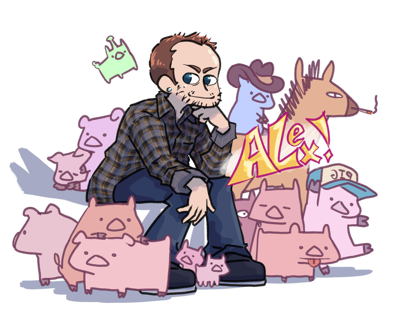 Hello, I'm Alex! I am an 2D animator and artistYou can check out animated series Quartz Quest hereI also draw a lot of pigs, you can look at them hereYou can help support me and my animations on my Ko-Fi.